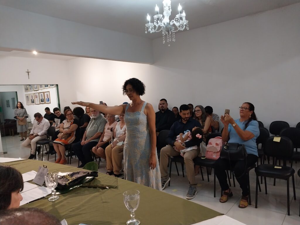 No discurso de posse, a escritora Cátia Maria Carneiro de Sena Hughes, nos brindou com as apresentações sócio-históricas do fundador da cadeira 17, o confrade Raimundo Brito, do patrono Epaminondas Berbert de Castro e do seu último ocupante, o poeta Gerson dos Anjos.