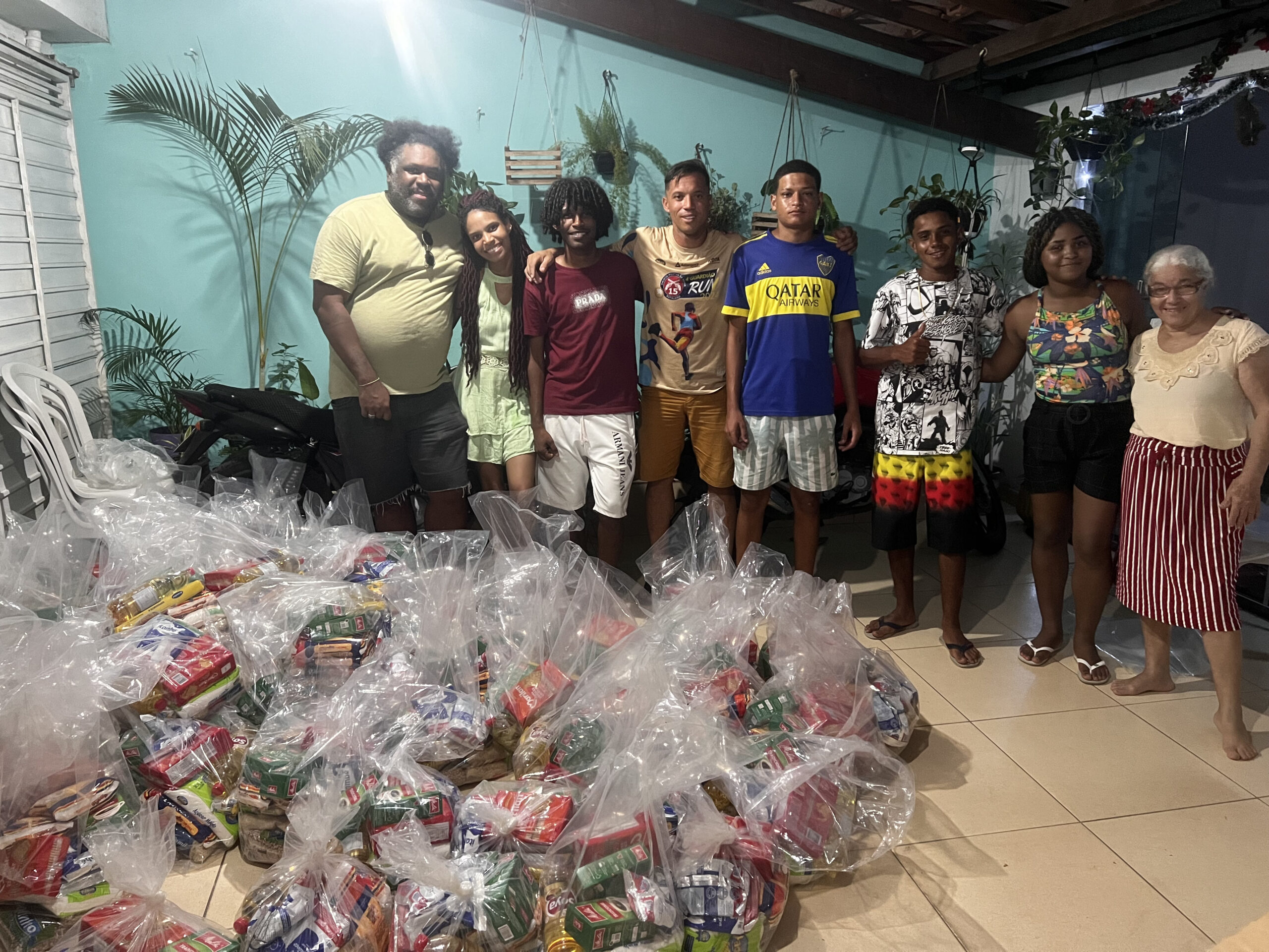 “Nosso objetivo é entregar um kit completo: cesta básica, panetone, frango... Parece simples, mas muda o fim de ano de quem enfrenta insegurança alimentar”, afirmou Rick Trindade.