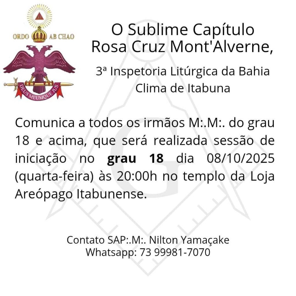 Sublime Capítulo Rosa Cruz Mont’Alverne – 3ª Inspetoria Litúrgica da Bahia