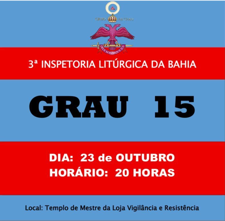 Local: Palácio Maçônico Josephe Rafle Salume/Aug.·. e Res.·. Loj.·. Simb.·. Areópago Itabunense nº 9, R.·. E.·. A.·. A.·. /G.·. L.·. E.·. B.·. , Or.·. de Itabuna/BA