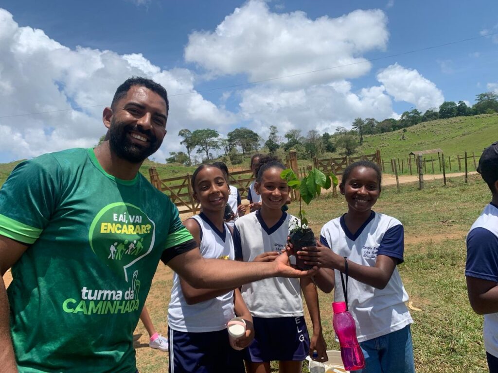 O Grupo Escolar Léa Galrão, de Ibicaraí, em parceria com o grupo Turma da Caminhada, realizou na manhã de segunda-feira, 13 de outubro, uma caminhada até a sede da Fazenda Estrela da Paz (zona norte do município) para uma visita e o plantio de mudas de árvores na margem da represa, localizada ao lado da estrada do Jacarandá.