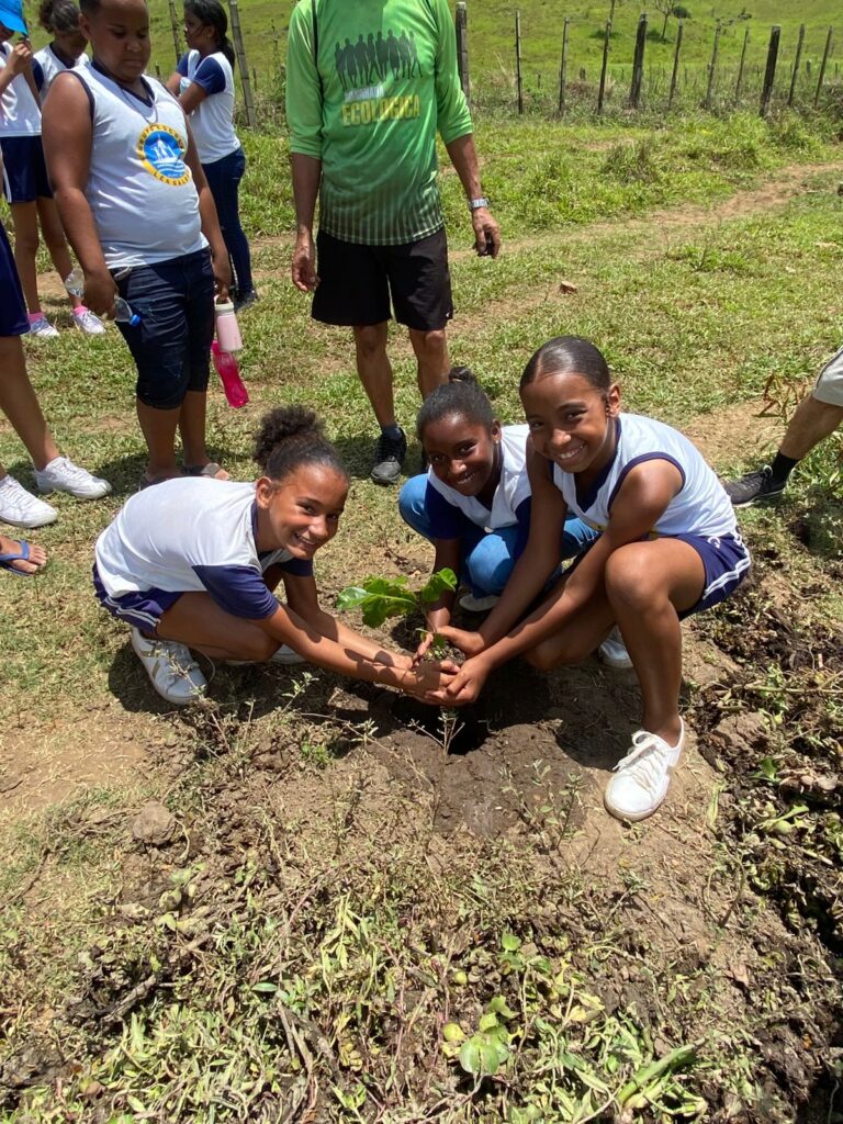 A visita à fazenda aconteceu às 9h da manhã. Na oportunidade, os alunos — que foram caminhando — puderam conhecer as dependências da propriedade, lanchar, tomar banho no local e realizar o plantio de nove mudas de árvores (Pau-brasil, Jacarandá-da-bahia e Jacarandá-branco), fornecidas pelo Horto Florestal da UESC.