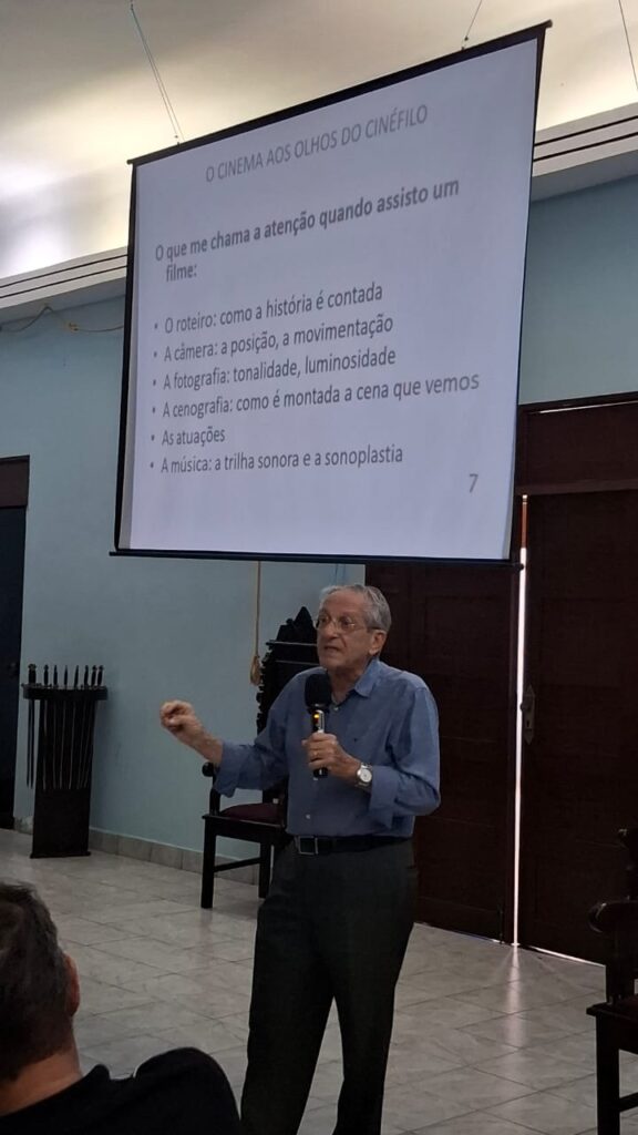 Para comemorar os 130 anos da criação do cinema, a Academia Paraibana de Letras Maçônicas, em prestigiada sessão ocorrida na manhã do sábado, 14 de junho de 2025, voltou a se reunir em Sessão Literária, presidida pelo acadêmico José de Lima Machado, para ouvir a palestra “Cinema e Cinéfilos”, proferida pelo Dr. José Mário Espínola, médico cardiologista e conceituado expert na área cinematográfica paraibana.