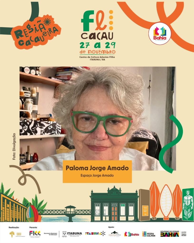 No sábado (29), às 11h, o Espaço Jorge Amado promove a mesa Narrativas de uma cozinha afetiva, com a chef de cozinha Bela Gil, do Instituto Comida e Cultura, além da escritora Paloma Jorge Amado e da filósofa e escritora Elisa Oliveira. A programação completa do evento será divulgada em breve. É possível conferir outras atrações já confirmadas no Instagram, no perfil @flicacau.