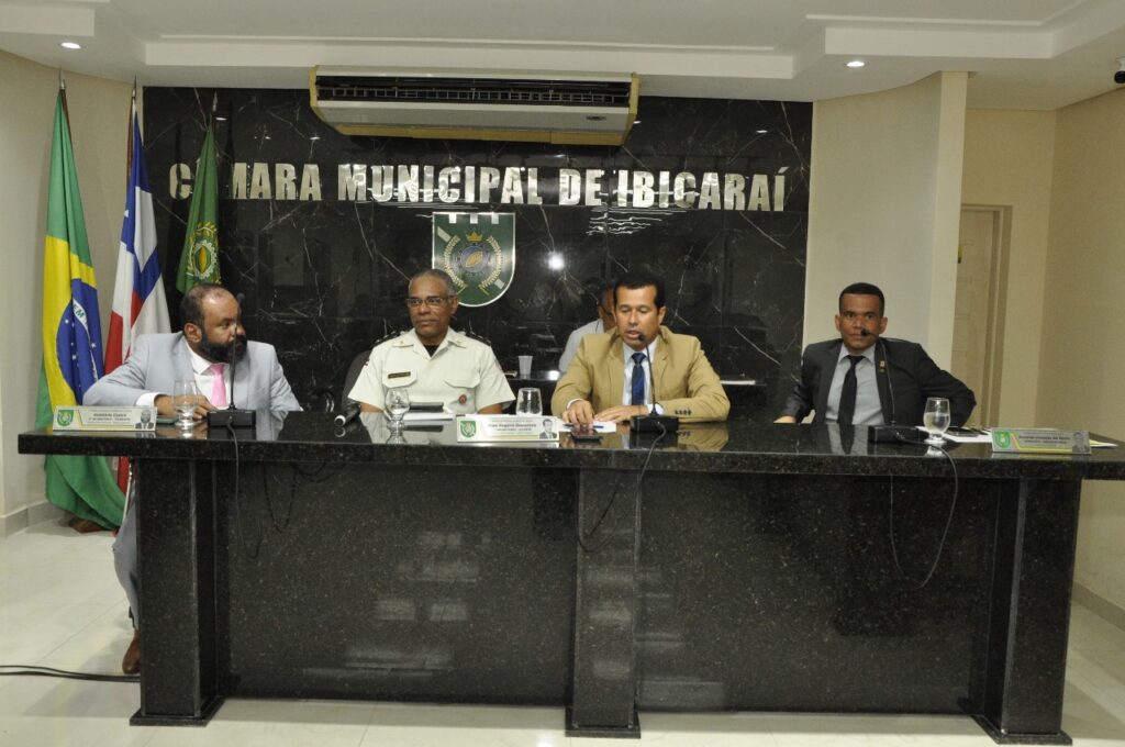 A Câmara de Vereadores de Ibicaraí realizou, na noite de quinta-feira, 06 de novembro de 2025, a 27ª sessão ordinária do primeiro biênio legislativo (2025/2026). A sessão foi presidida interinamente pelo vereador Alam Rogério e contou com a presença dos vereadores Demétrio Castro (1º secretário), Rozenildo Malaquias (2º secretário), Guilherme Cardoso, Clícia Guerreira, Valdinei Oliveira e Alisson Carvalho. Também participaram o Comandante da Polícia Militar, Major PM Cláudio Lopes, e o subtenente PM (aposentado) Raniere Nascimento de Oliveira.
