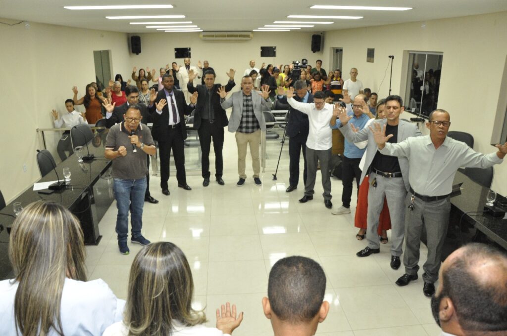 A Câmara de Vereadores de Ibicaraí realizou, na noite de quinta-feira, 30 de outubro de 2025, uma sessão especial em homenagem ao Dia Municipal do Evangélico. A solenidade contou com a presença dos vereadores Francisco Henrique, Alam Rogério, Demétrio Castro, Leonardo Alves, Rozenildo Malaquias, Guilherme Cardoso, Valdinei Oliveira e Clícia Guerreira.