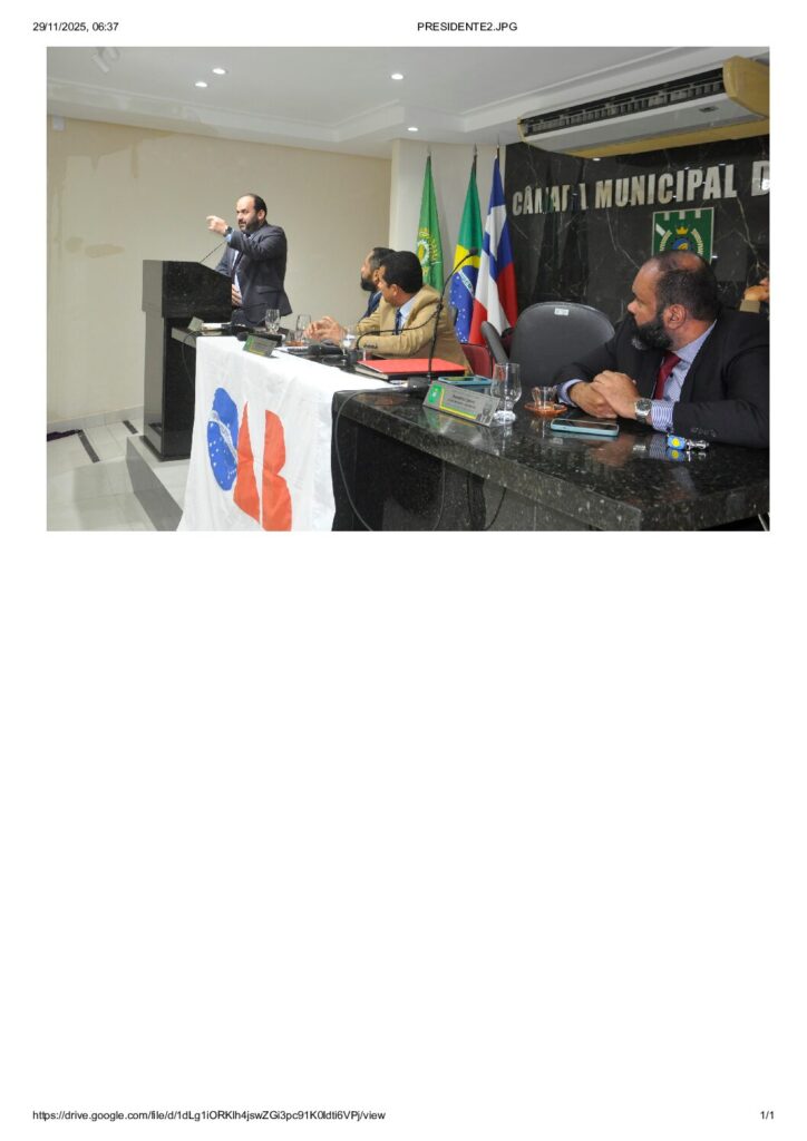 Encerrando a sessão, o presidente interino Alam Rogério parabenizou a instituição e todos os advogados presentes. Destacou a importância da OAB para a sociedade e reafirmou que o Legislativo Municipal seguirá atuando ao lado da lei e em parceria com a Ordem. Alam encerrou convidando a todos para a 30ª sessão ordinária, marcada para a próxima quinta-feira, 4 de dezembro, às 18h30.