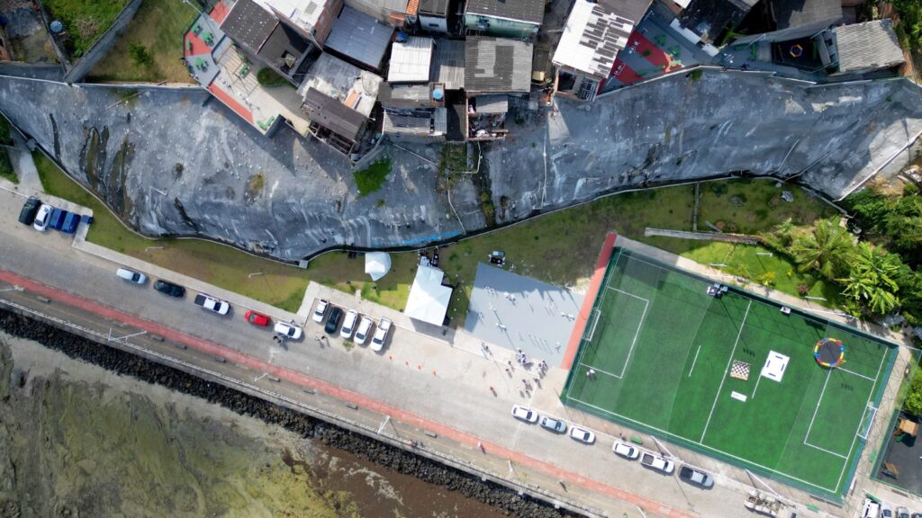 Executada com recursos do Governo Federal, a intervenção incluiu uma ampla requalificação urbanística no entorno, com a implantação de um novo campo de futebol society, a requalificação de escadarias, a criação de espaços de lazer e convivência e a construção de um mirante, que valoriza a paisagem e fortalece o sentimento de pertencimento dos moradores da região.