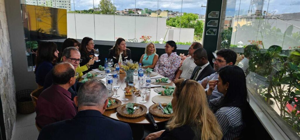 A Santa Casa de Itabuna recebeu, nesta terça-feira (24), a visita da desembargadora do Tribunal Regional do Trabalho da 5ª Região (TRT-5), Dra. Eloina Machado, embaixadora da Oncologia da instituição. A magistrada foi recepcionada em um almoço institucional pelo vice-provedor Peter Deviris, o 1º Tesoureiro André Fernando Wermann e pelo 2º secretário José Sidenilton Pereira.