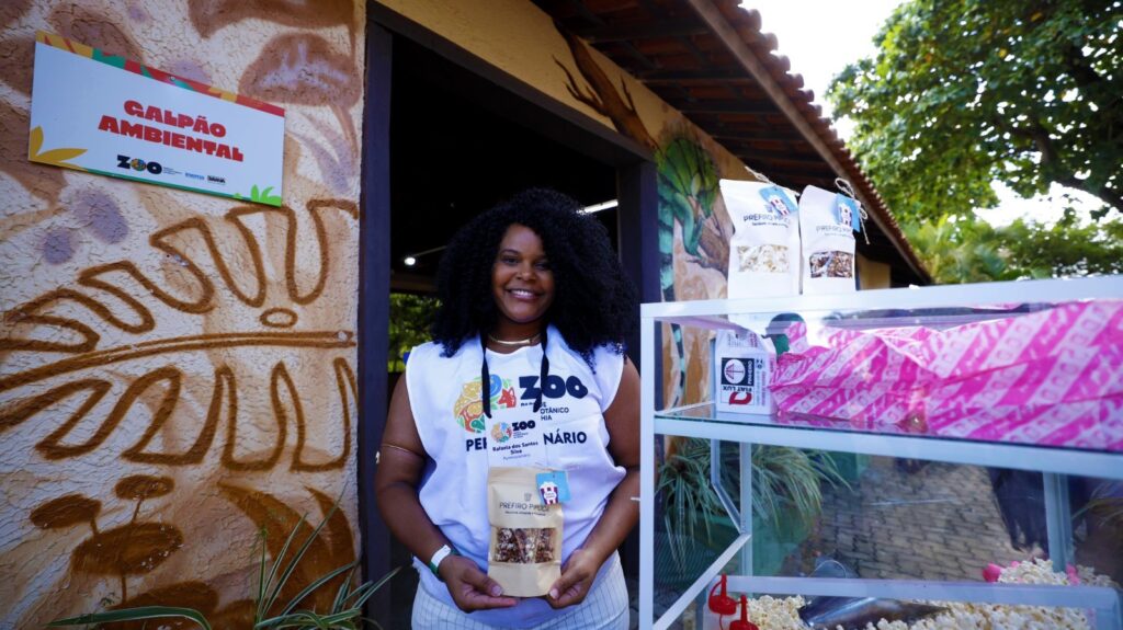 Rafaela dos Santos vende pipoca no parque e conta da importância da regularidade documental . “Há mais de 10 anos que eu atuo aqui. Vim do segmento dos meus pais que atuam aqui há mais de 30 anos e, assim como para os outros permissionários, é um momento muito especial para mim ter essa regularização e receber esses equipamentos de trabalho”, completou. (Secom/BA)