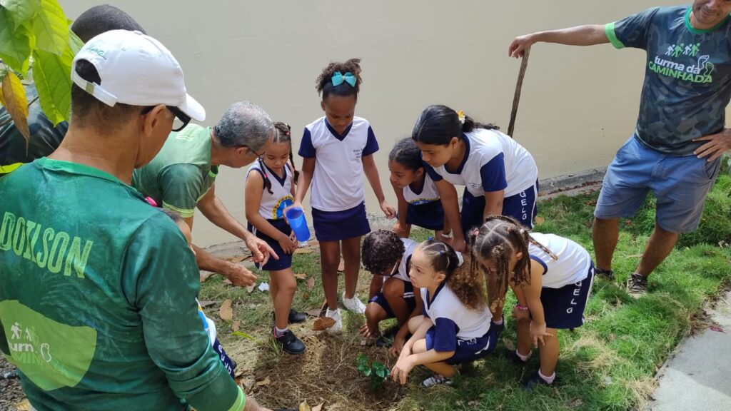 Em alusão ao Dia da Árvore, celebrado no último domingo, 21 de setembro, o Grupo Escolar Léa Galrão (em Ibicaraí) realizou, na manhã de segunda-feira, dia 22, uma palestra sobre meio ambiente e um momento de plantio de árvore no espaço da escola, com a participação de quatro integrantes da Turma da Caminhada.