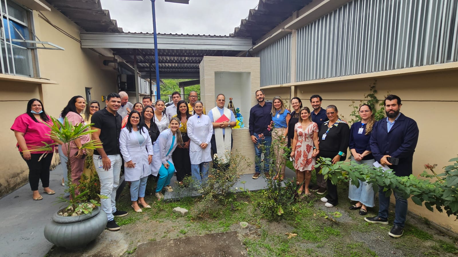 A ocasião foi marcada por um momento de fé e devoção com a chegada da imagem de Nossa Senhora Aparecida contando com a presença de colaboradores e coordenadores da unidade hospitalar. A bênção foi conduzida pelo Padre Diego de Oliveira Americano, coordenador da Diocese de Itabuna, em um gesto simbólico de acolhimento, união e bem-estar.