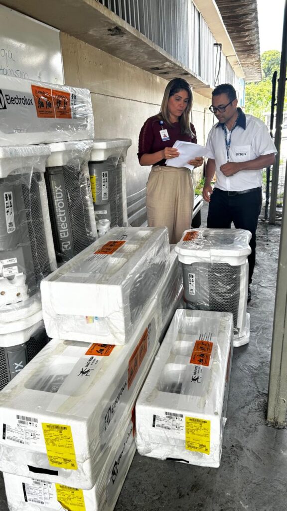 O Hospital de Base Luís Eduardo Magalhães (HBLEM), administrado pela Fundação de Atenção à Saúde de Itabuna (FASI), recebeu contrapartida de sete aparelhos de ar-condicionado do Centro Universitário UNEX Itabuna, recentemente.
