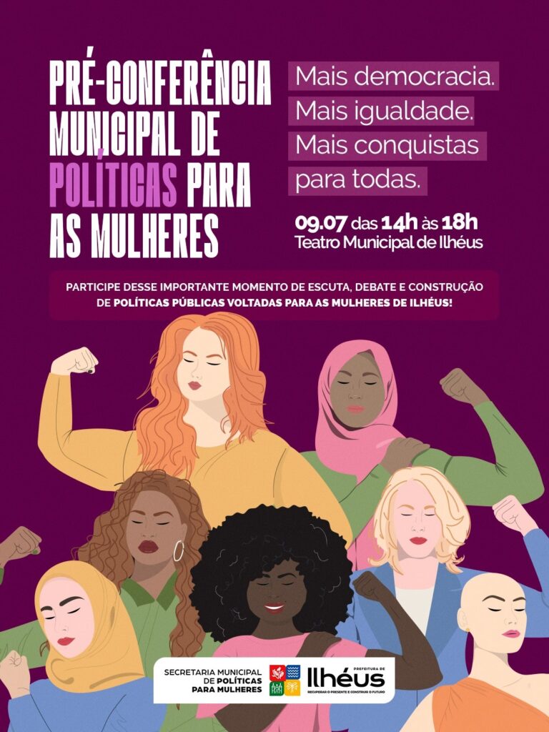 A Secretaria de Políticas para Mulheres convida todas as cidadãs e cidadãos a participarem deste momento decisivo, reafirmando o compromisso da gestão municipal com a valorização, o respeito e a defesa dos direitos das mulheres de Ilhéus.