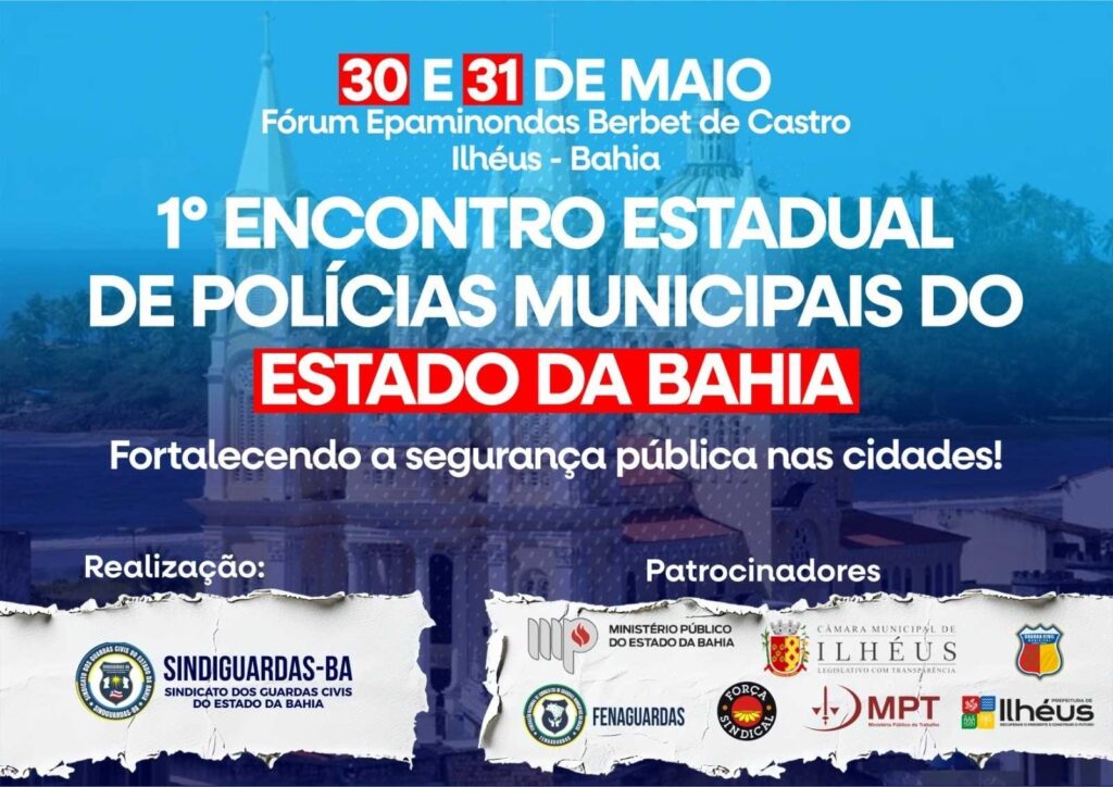 A cidade de Ilhéus será palco do 1º Encontro Estadual de Policiais Municipais do Estado da Bahia, promovido pelo SINDGUARDAS/BA nos dias 30 e 31 de maio de 2025, com o apoio da Prefeitura de Ilhéus. O evento será realizado no Fórum Epaminondas Berbert de Castro, localizado no bairro Cidade Nova, e reunirá autoridades e especialistas das esferas municipal, estadual e federal.