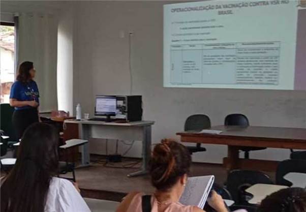 Para assegurar a aplicação adequada do imunizante, enfermeiros e técnicos de enfermagem da sala de vacina passaram, esta semana, por capacitação específica sobre a administração da vacina em gestantes a partir da 28ª semana.