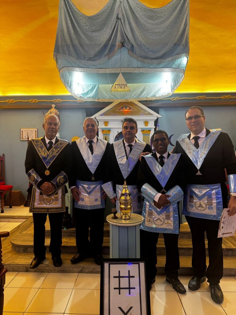 Além de Eduardo Passos, como Ven.·. Mes.·., foram empossados também os IIr.·. Paulo Alfredo Santana Dantas, 1º Vig.·. e Mauro Sant'Anna Couto, 2º Vig.·.