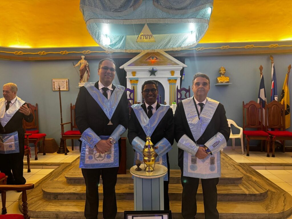 Além de Eduardo Passos, como Ven.·. Mes.·., foram empossados também os IIr.·. Paulo Alfredo Santana Dantas, 1º Vig.·. e Mauro Sant'Anna Couto, 2º Vig.·.