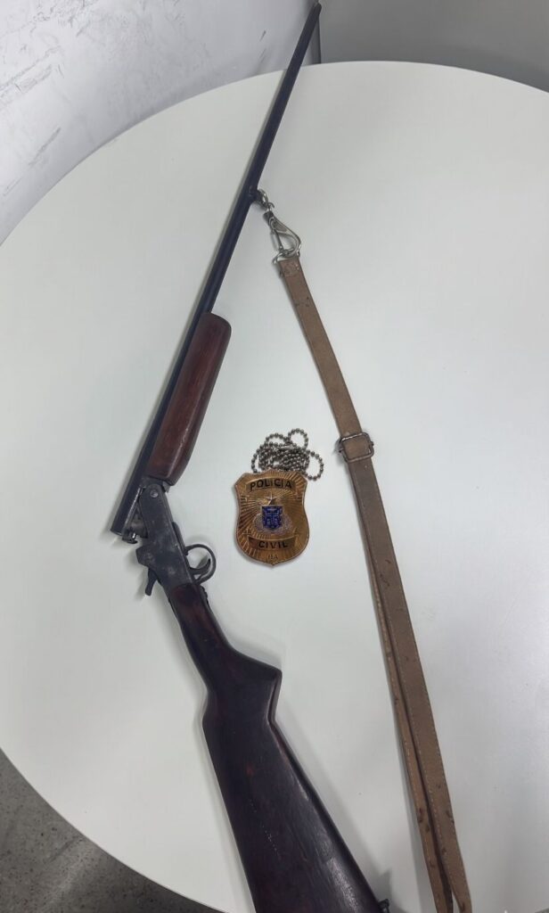Na sequência, o próprio investigado conduziu os policiais até sua residência, onde foi realizada a entrega voluntária da arma. No imóvel, foi apreendida uma espingarda marca Boito, calibre .32, apontada como o instrumento utilizado no crime. O armamento foi imediatamente arrecadado e será submetido à perícia técnica para fins de confronto balístico.