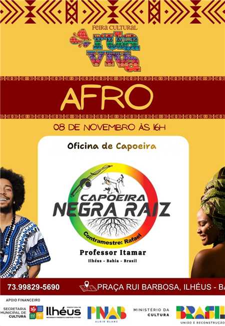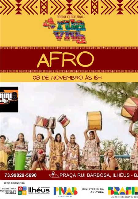 Com o apoio da Lei Aldir Blanc, do Ministério da Cultura e da Prefeitura de Ilhéus, o Rua Viva Afro – Africanidades reforça o compromisso do município com a valorização das identidades, da arte e das tradições que formam a riqueza cultural de Ilhéus e da Bahia.
