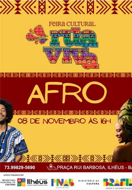 A Prefeitura de Ilhéus, por meio da Secretaria Municipal de Cultura, apoia mais uma edição da Feira Cultural Rua Viva, que nesta semana ganha uma temática especial: Africanidades. O evento acontece neste sábado (8), a partir das 16h, na Praça Rui Barbosa, e celebra as expressões da cultura afro-brasileira com uma programação diversificada e gratuita.