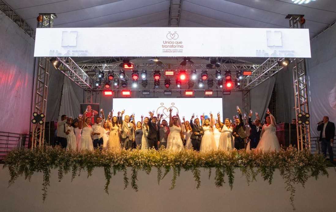 A Prefeitura de Ilhéus realizou, na segunda-feira (08), o Casamento Comunitário “União que Transforma”, evento que oficializou a união civil de 35 casais atendidos pelos seis Centros de Referência de Assistência Social (CRAS) do município. A cerimônia, realizada no Centro de Convenções, marcou um momento de celebração, reconhecimento legal e concretização de sonhos para famílias em situação de vulnerabilidade social.A ação, promovida por meio da Secretaria de Promoção Social e Combate à Pobreza, garantiu acesso gratuito à regularização civil, fortalecendo vínculos afetivos, assegurando direitos e ampliando o cuidado com as famílias ilheenses. O evento contou com a presença do prefeito Valderico Júnior, da vice-prefeita Wanessa Gedeon, equipes da Secretaria e familiares dos noivos.
