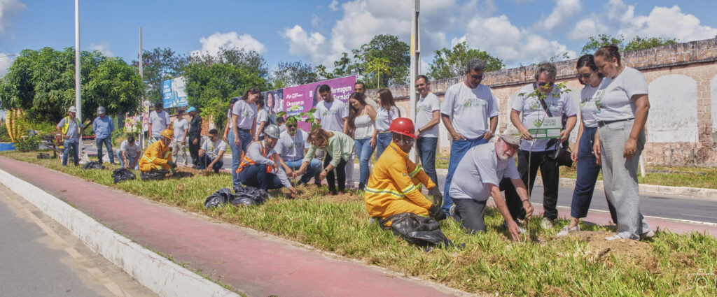 O primeiro momento aconteceu no canteiro central da Avenida Manoel Chaves, com o plantio de mudas de Ipês-roxos (Handroanthus heptaphyllus) e amarelos (Handroanthus albus), totalizando 35 mudas plantadas no local.
