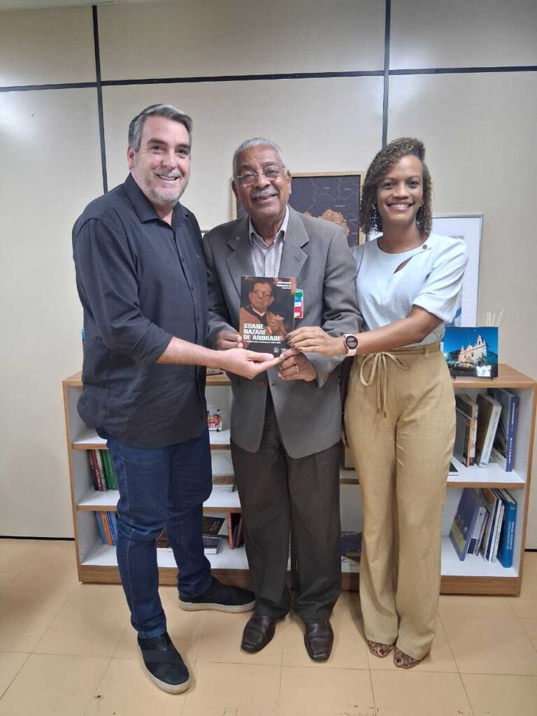 O professor e escritor Josevandro Nascimento, presidente da Academia de Letras de Ilhéus (ALI), na quarta-feira, 8/10, teve um proveitoso encontro com o diretor da Fundação Pedro Calmon (FPC), Sandro Magalhães e com a diretora de Bibliotecas Públicas, Tamires Neves Conceição, quando solicitou equipamentos para reativação da Biblioteca da “Casa de Abel”.