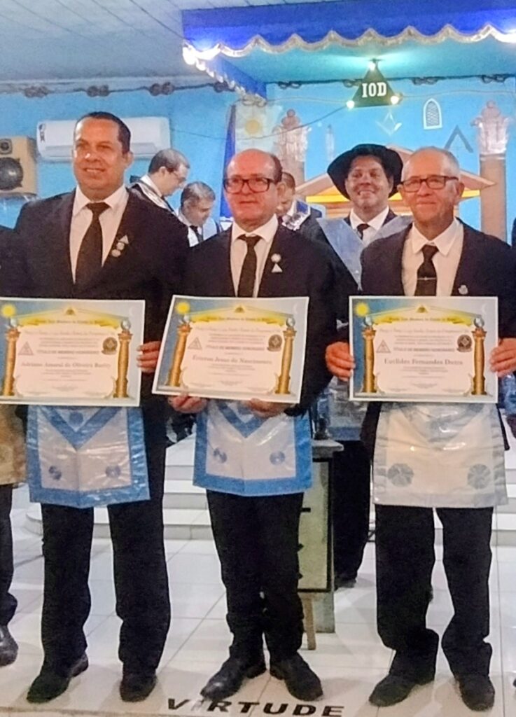 Na oportunidade a Aug.·. e Resp.·. Loj.·. Sim.·. Romã do Progresso homenageou três valorosos IIr.·. Adriano Amaral de Oliveira Burity, membro da Aug.·. e Resp.·. Loj.·. Sim.·. Harmonia Itarantiense do Or.·. de Itarantim/BA; Eriston Jesus do Nascimento, membro da Aug.·. e Resp.·. Loj.·. Sim.·. União e Caridade do Or.·. de Canavieiras/BA e, Euclides Fernandes Dutra, membro da Aug.·. e Resp.·. Loj.·. Sim.·. Mahachoan do Or.·. de Camacã, todas praticantes do R.·.E.·.A.·.A.·. e jurisdicionada a Grande Loja Maçônica do Estado da Bahia (G.·.L.·.E.·.B.·.) com o título de ‘membro honorário’ daquela laboriosa Of.·.
