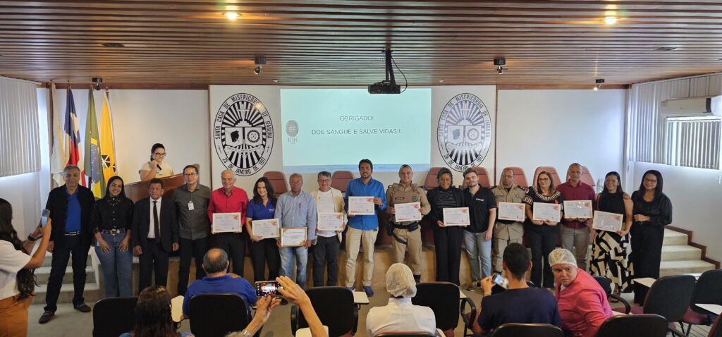 O Simpósio de Qualidade e Segurança Transfusional do Sul da Bahia foi encerrado com a entrega do “Selo Amigos da Santa Casa” aos representantes de municípios, como Camacã, Itaju do Colônia Uruçuca; de empresas como TV Santa Cruz, Grupo Pai Mendonça, Colégio Divina Providência, Ieprol, Sicredi e Unimed; e instituições como 15º Batalhão da Polícia Militar, Rotary Club Itabuna, Colégio da Polícia Militar, Hospital de Base, e Tiro de Guerra.