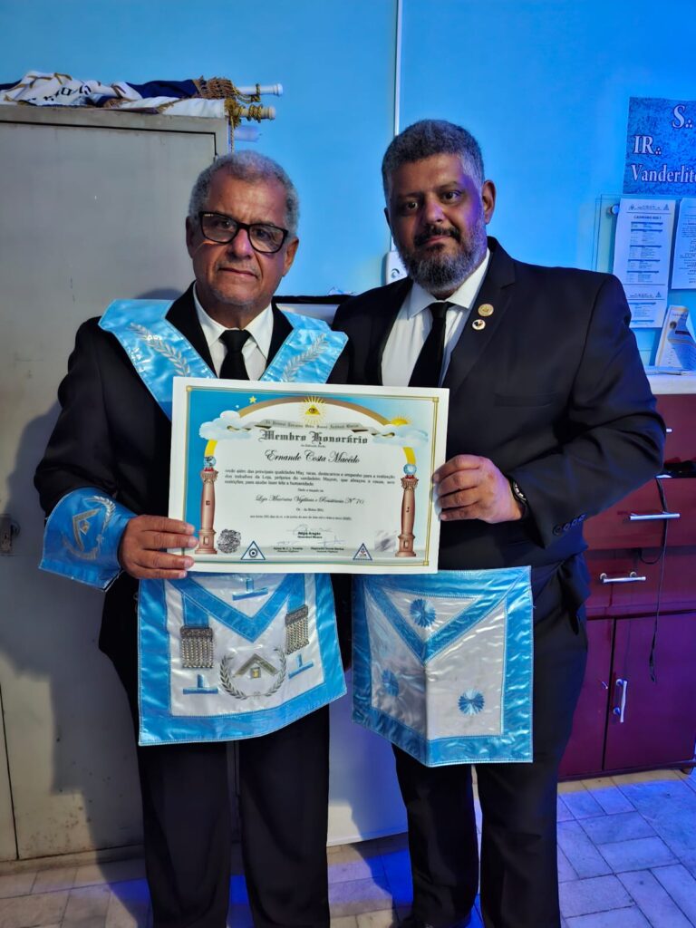 Na oportunidade, o Ven.·. Mes.·. e a diretoria daquela Oficina homenageou um Ir.·. que contribui com o engrandecimento da Maçonaria, especialmente a Maçonaria regional, a exemplo do Ir.·. ERNANDE COSTA MACEDO, M.·. I.·. da A.·.R.·.L.·.S.·. Mahachoan do Or.·. de Camacã, que merecidamente foi agraciado com o título de MEMBRO HONORÁRIO da Aug.·. e Resp.·. Loj.·. Simb.·. Vigilância e Resistencia, pelos seus relevantes serviços prestados a Maçonaria, a Pátria e a Humanidade.