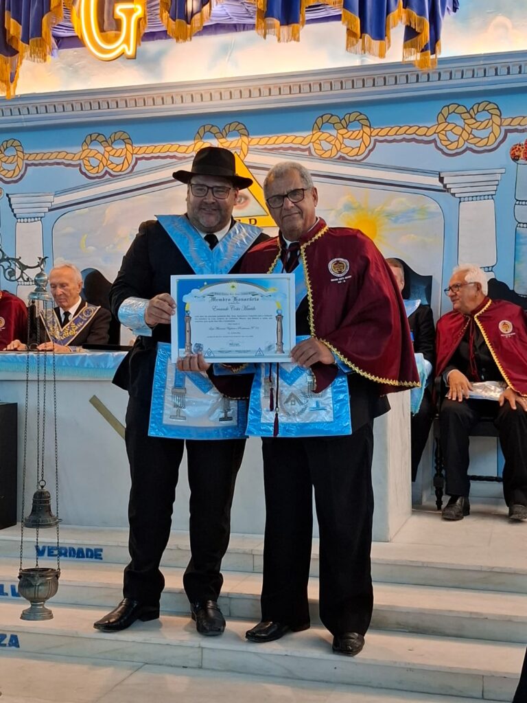 Na oportunidade, o Ven.·. Mes.·. e a diretoria daquela Oficina homenageou um Ir.·. que contribui com o engrandecimento da Maçonaria, especialmente a Maçonaria regional, a exemplo do Ir.·. ERNANDE COSTA MACEDO, M.·. I.·. da A.·.R.·.L.·.S.·. Mahachoan do Or.·. de Camacã, que merecidamente foi agraciado com o título de MEMBRO HONORÁRIO da Aug.·. e Resp.·. Loj.·. Simb.·. Vigilância e Resistencia, pelos seus relevantes serviços prestados a Maçonaria, a Pátria e a Humanidade.